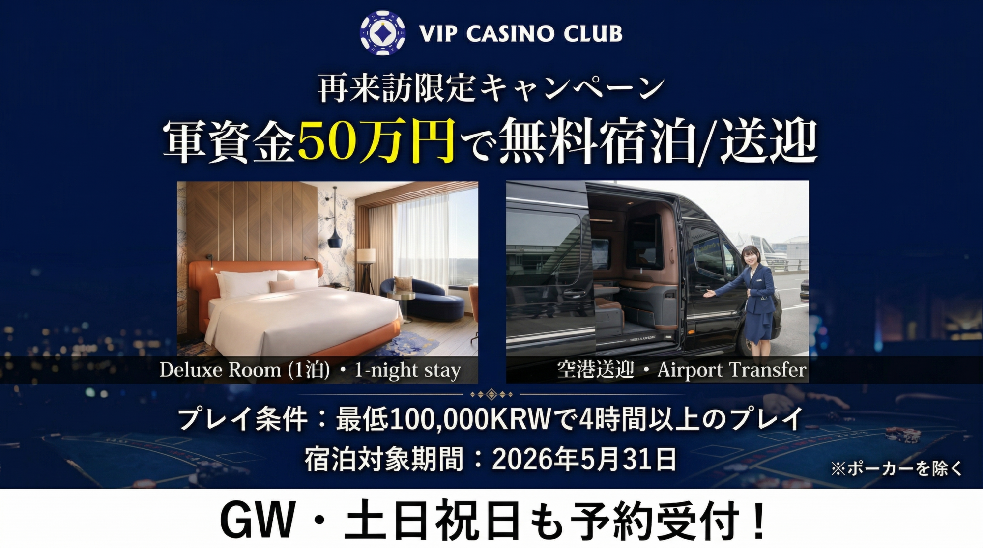 通常の来場では受けられないINSPIRE CASINO(INSPIREカジノ)でVIP向けの特典(送迎・宿泊・キャッシュバックなど)を、日本語サポート・コンシェルジュ付きでご利用いただけます。