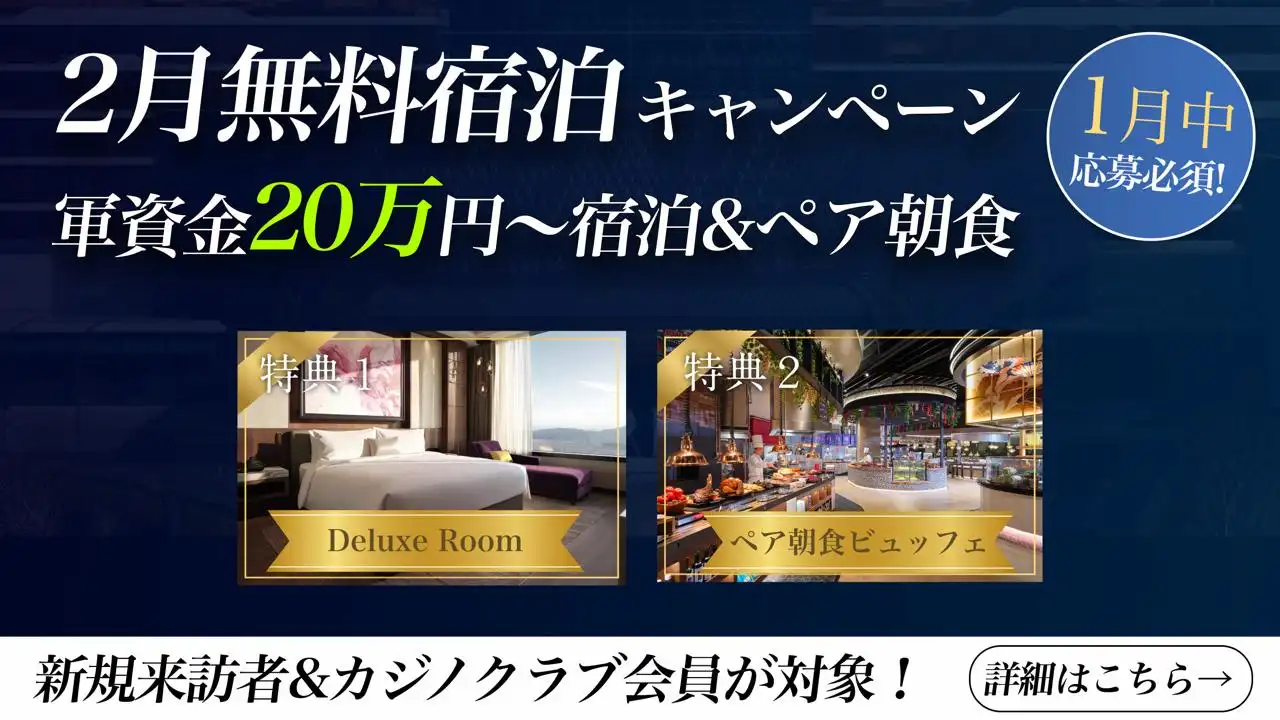 - 特典2:プレイ履歴に応じた特典(宿泊・フライト・食事・送迎)