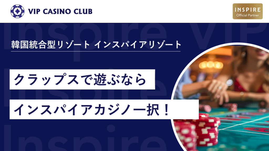 クラップスはもちろん、バカラやブラックジャックなど様々なゲームに加え、ホテルやレストラン、ショッピングモールなども完備した総合リゾートとして、快適な滞在をお約束します。VIP CASINO CLUBを活用すれば、さらにお得にカジノライフを満喫できます。韓国でカジノを楽しみたい方は、ぜひインスパイアカジノへ足を運んでみてはいかがでしょうか。