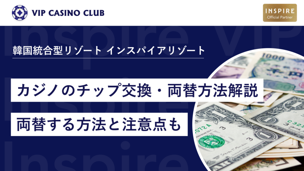 今回の記事では韓国カジノでの現金からチップへの交換方法や両替手数料をできるだけ抑える方法について解説してきました。カジノでは必ずチップが必要となり両替時やチップへの換金時に手数料がかかるの損しない方法を選びましょう。