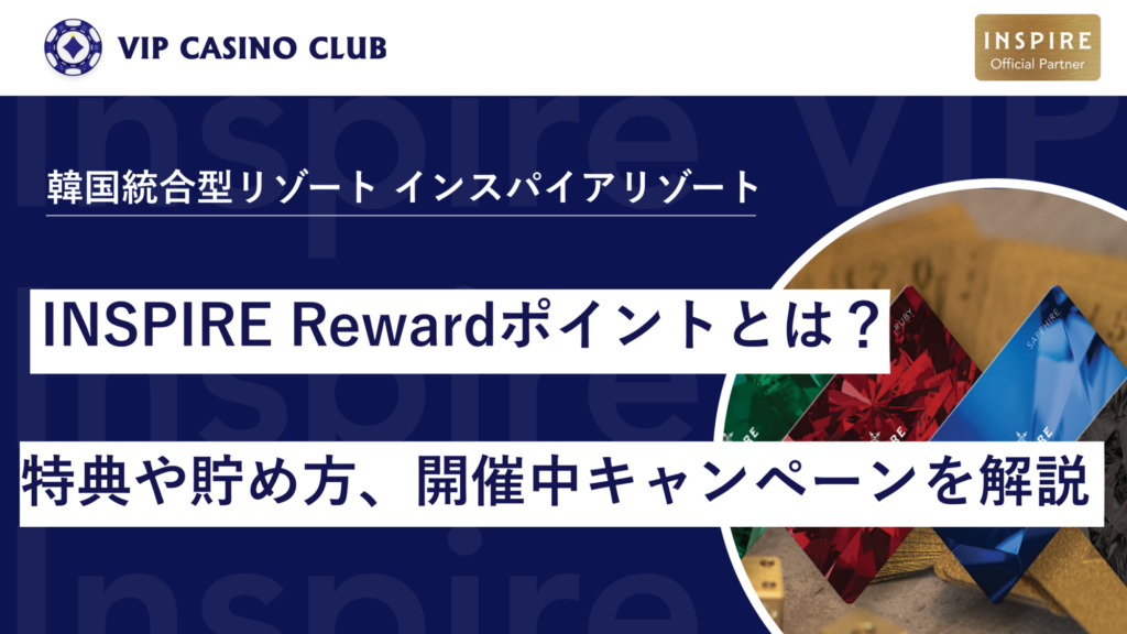本記事では、INSPIRE Rewardポイントの基本的な仕組み、貯め方、特典の詳細に加えて、VIP CASINO CLUB経由で登録するメリットなどをまとめてご紹介します。