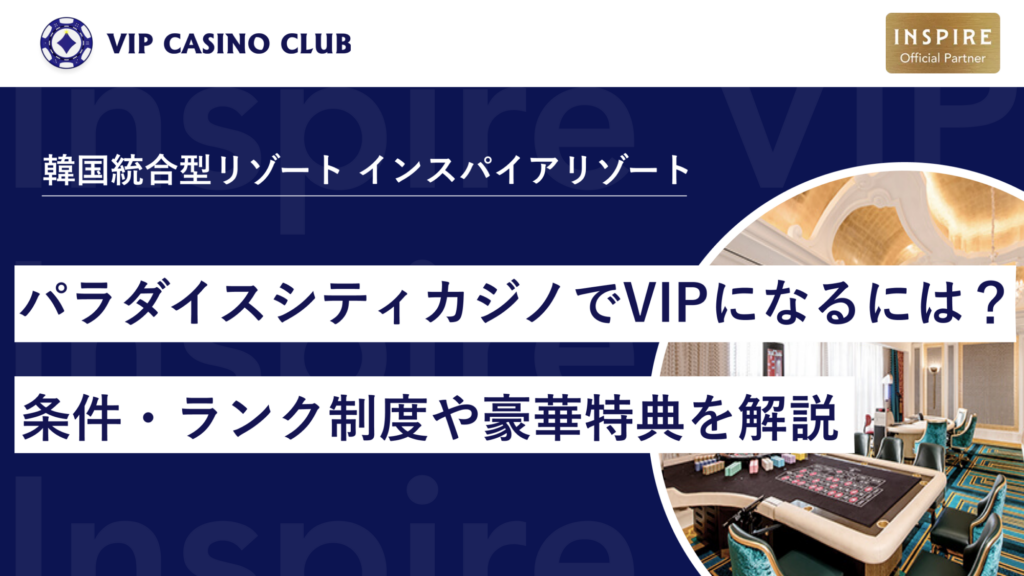 この記事では、パラダイスシティカジノの会員ランク別の特典詳細とVIPになる方法、さらに同エリアで注目の「インスパイアカジノ」のVIP制度まで徹底解説します。