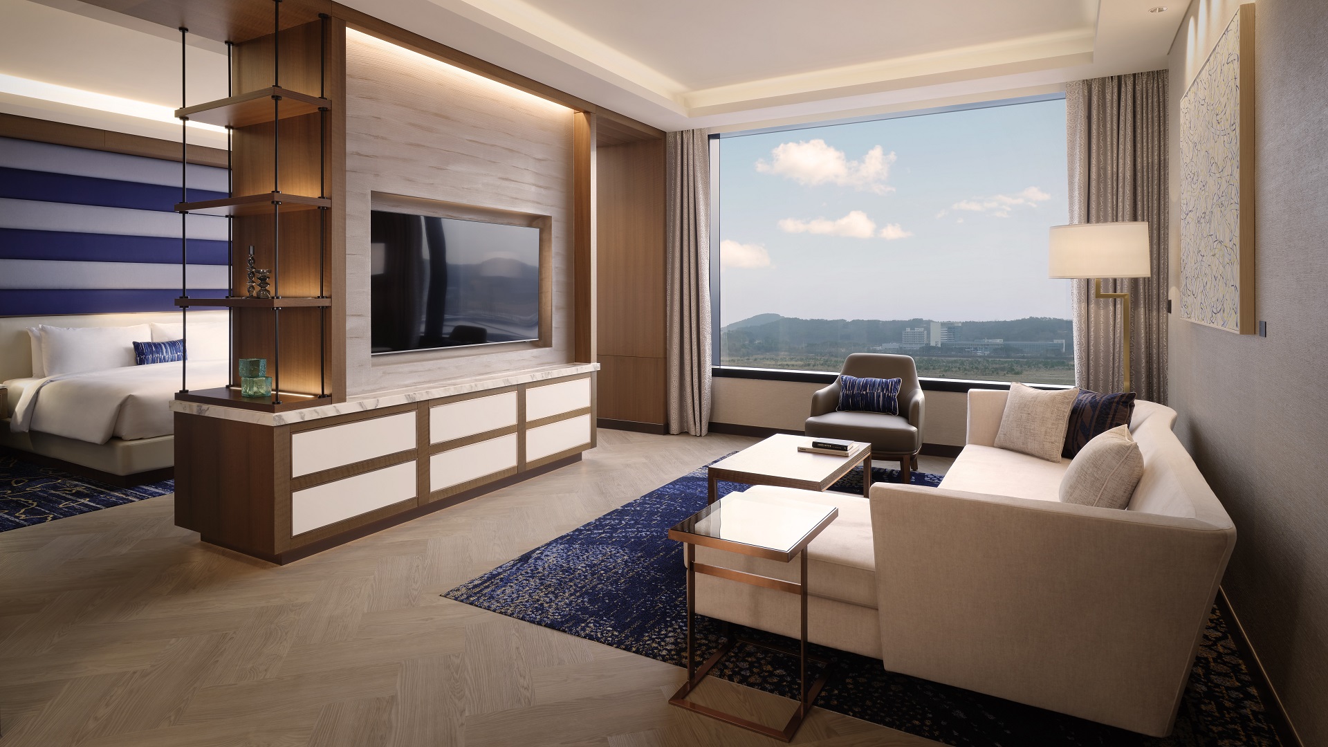客室には大理石仕様のワークデスクや多機能サイドテーブル、高級レザーソファが備えられ、上質な滞在を演出します。さらに、インスパイアの宴会場やカンファレンスルームに直結しており、ビジネスシーンでの利用にも適しています。