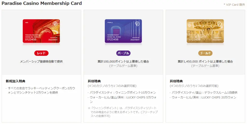 紹介したクーポンは、すべて「新規・初回限定」です。 過去に一度でもパラダイスカジノグループ(ソウル・仁川・釜山・済州)で会員カードを作成したことがある方は対象外となります。
