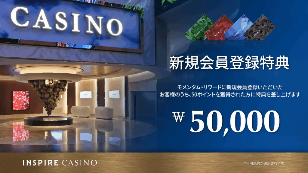 出典元:カジノメンバーシップ新規会員登録イベント < カジノ | インスパイア・エンターテインメント・リゾート
