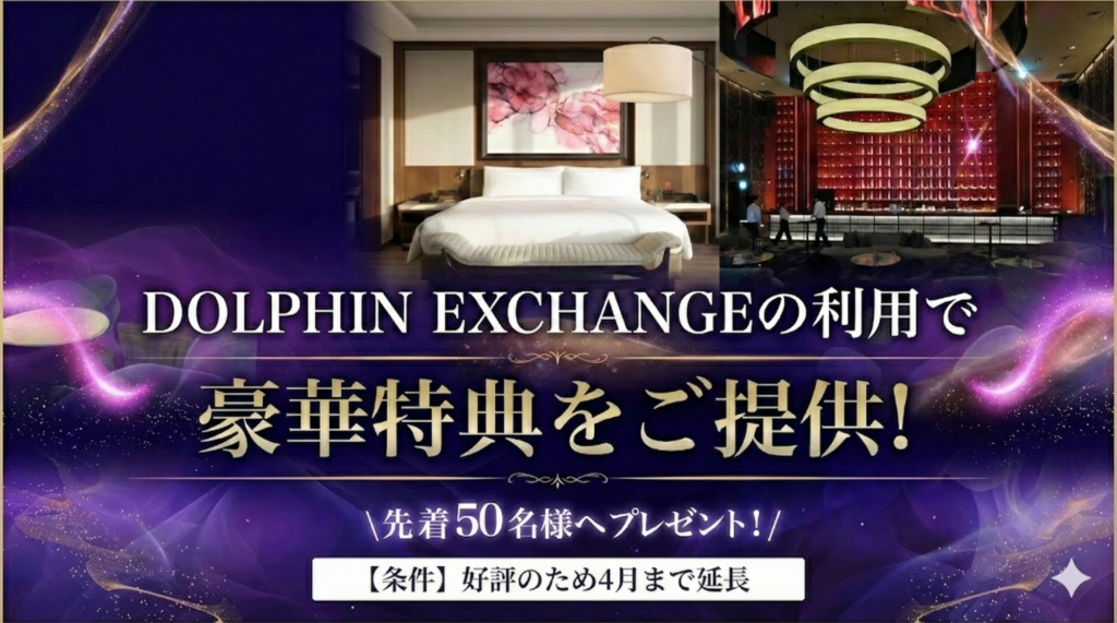 カジノクラブ会員の方は”カジノクラブ優遇レート”でお得な換金が可能な提携換金所”DOLPHIN EXCHANGE”で換金するだけで特典がもらえる!